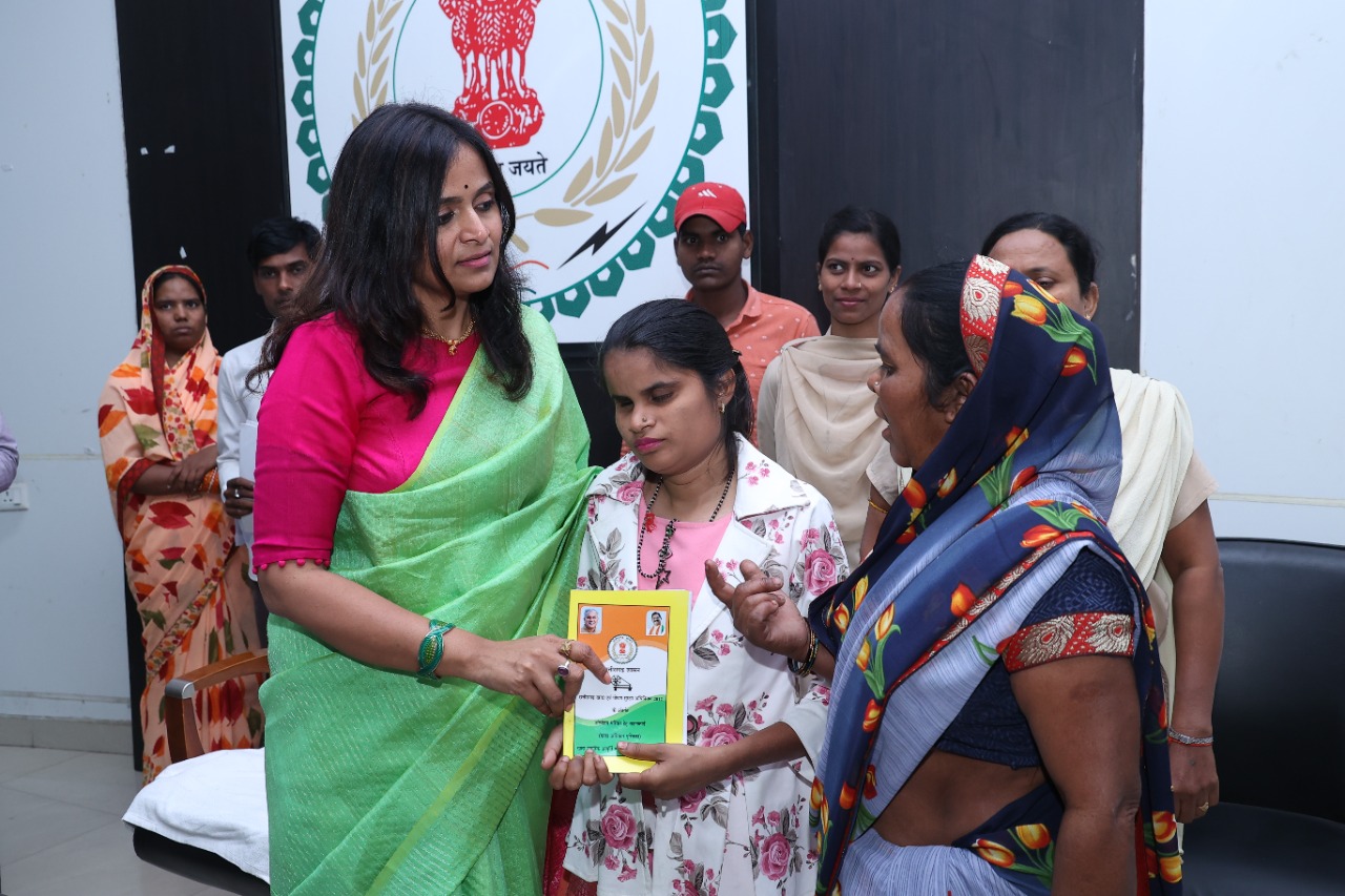 रायगढ़, 16 नवम्बर I मां अपनी दृष्टिहीन बेटी मिथिला को लेकर जनदर्शन में पहुंची। ग्राम पंचायत गढ़उमरिया निवासी श्रीमती गीता बाई साव ने अपनी दृष्टिहीन बेटी के लिए शासन की राशन कार्ड, विकलांग, आवास जैसे विभिन्न योजनाओं से लाभान्वित करने के लिए आवेदन किया। कलेक्टर श्रीमती साहू उनके आवेदन पर खाद्य अधिकारी को निर्देशित किया एवं मौके पर ही उन्हें अंत्योदय अन्न योजना के विशेष कमजोर वर्ग का राशन कार्ड बनाकर प्रदाय किया। कलेक्टर द्वारा बालिका के लिए शासकीय योजनाओं में हर संभव मदद करने की बात कही।