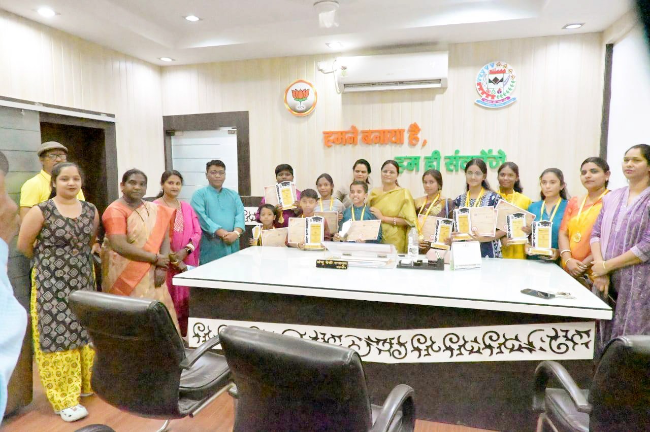 नगर पालिक निगम कोरबा के मुख्य प्रशासनिक भवन साकेत स्थित अपने कक्ष में महापौर श्रीमती संजूदेवी राजपूत ने इन सभी प्रतिभावान प्रतिभागियों को आमंत्रित कर उनका सम्मान किया तथा उन्हें अपनी हार्दिक बधाई दी।