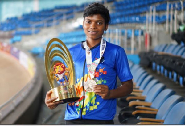 नई दिल्ली । सबीना कुमारी ने झारखंड के चतरा जिले में एक साधारण ट्रैक पर साइक्लिंग शुरू की , जो इनडोर वेलोड्रोम से दूर था। शुक्रवार को, एक दिहाड़ी मजदूर और एक गृहिणी की 18 वर्षीय बेटी ने खेलो इंडिया यूथ गेम्स में अपने पदार्पण में साइक्लिंग में तीन पदक जीते। सबीना ने लड़कियों की केरिन और टीम स्प्रिंट स्पर्धाओं में क्रमशः स्वर्ण पदक जीते, साथ ही 200 मीटर स्प्रिंट में कांस्य पदक जीता।