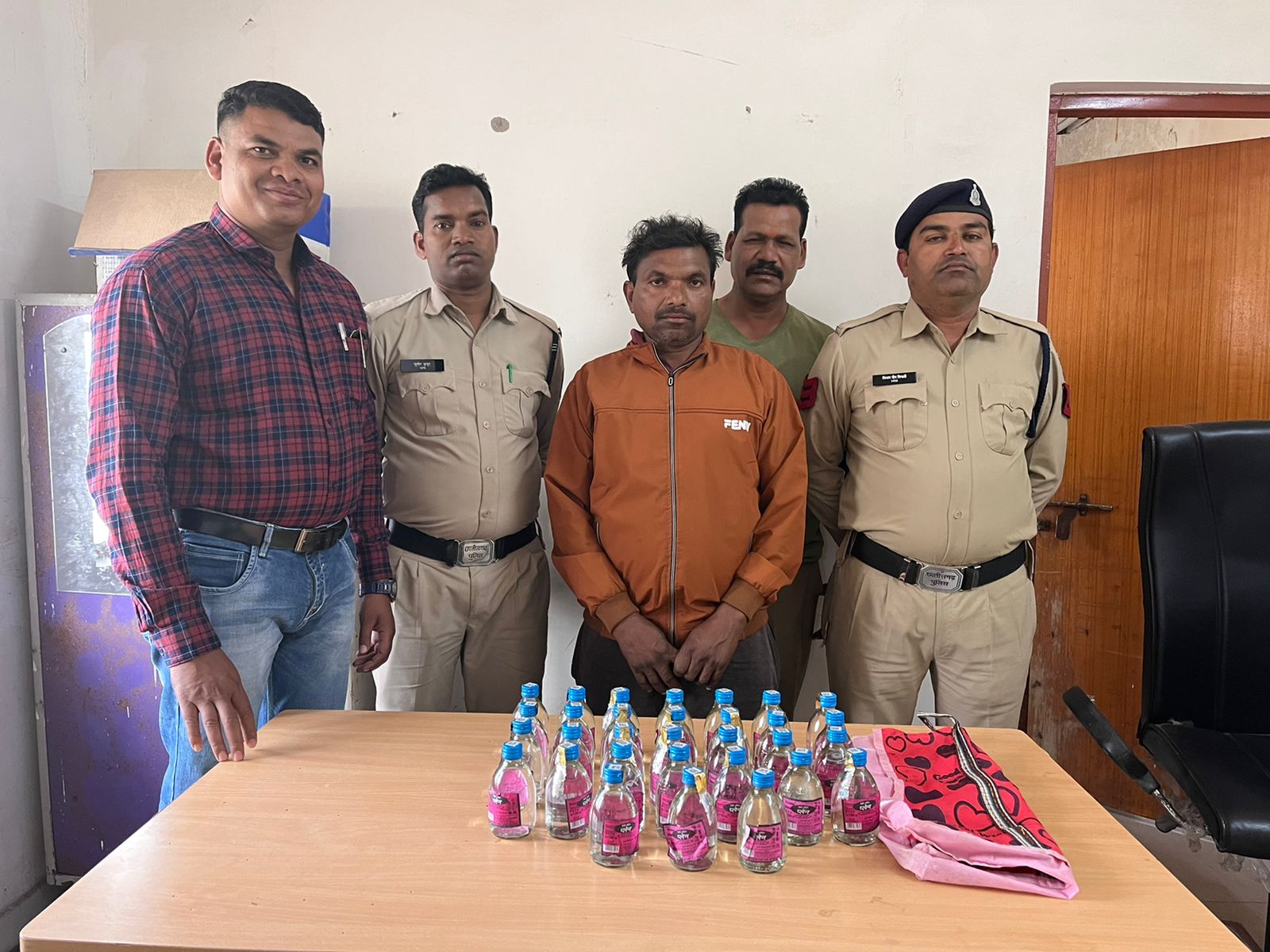 बिलासपुर,17 नवंबर पुलिस अधीक्षक महोदया बिलासपुर श्रीमति पारूल माथुर के द्वारा जिले के सभी थाना/चैकी प्रभारीयों को अवैध शराब ब्रिकी/शराब परिवहन करने वाले व्यक्तियों पर अंकुश लगाने हेतु निर्देशित किया गया था, आदेश के परिपालन मे अतिरिक्त पुलिस अधीक्षक महोदय (शहर)राजेन्द्र जायसवाल एवं नगर पुलिस अधीक्षक महोदया(सिटी कोतवाली) श्रीमति पूजा कुमार के द्वारा आवश्यक दिशा निर्देश प्राप्त कर विश्वस्त मुखबीर लगाकर अवैध गतिविधियों पर नजर रखी जा रही थी इसी क्रम मे दिनांक 17.11.2022 को थाना सिरगिट्टी को मुखबीर से सूचना प्राप्त होने पर थाना प्रभारी सिरगिट्टी द्वारा तत्काल सिविल टीम गठित कर नयापारा परसदा के पास कोंदा धु्रव पिता स्व. छोटू धु्रव उम्र 46 वर्ष निवासी नयापारा परसदा सिरगिट्टी थाना सिरगिट्टी जिला बिलासपुर को मोटर सायकल सीजी10 बीएफ 6586 को रूकवाकर गाडी की तलाशी लेने पर गाडी के डिक्की अंदर एक लाल सफेद रंग के कपडे के झोला मे रखे 31 पाव देशी मदिरा प्लेन मात्रा 5.580 लीटर कीमती 2480 रूपये जप्त कर आरोपी को धारा 34(2)59(क) आबकारी एक्ट के तहत् कार्यवाही किया गया। आगे भी अवैध गतिविधियों पर कार्यवाही जारी रहेगी।