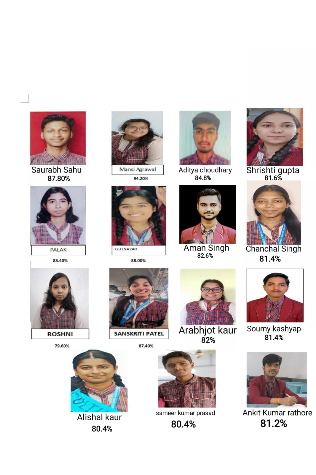 छात्रों ने अपने उत्कृष्ट प्रदर्शन के लिए स्कूल के शिक्षकों और अपने माता-पिता का आभार व्यक्त किया है। सौरभ साहू ने कहा कि उनकी सफलता के पीछे उनके शिक्षकों का मार्गदर्शन और माता-पिता का सहयोग है। मानसी अग्रवाल ने कहा कि उन्होंने अपनी सफलता के लिए कड़ी मेहनत की है और उनके शिक्षकों ने उन्हें सही दिशा में मार्गदर्शन किया है।