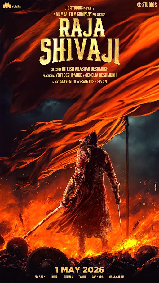मुंबई, 22 मई 2025: जियो स्टूडियोज़ और मुंबई फिल्म कंपनी की शानदार फिल्म राजा शिवाजी 1 मई, 2026 को वैश्विक स्तर पर रिलीज़ होगी। रितेश देशमुख द्वारा निर्देशित बहुभाषी ऐतिहासिक एक्शन ड्रामा मराठी, हिंदी, तमिल, तेलुगु, कन्नड़ और मलयालम में रिलीज़ होगी। इसमें रितेश देशमुख, संजय दत्त, अभिषेक बच्चन, जेनेलिया देशमुख, महेश मांजरेकर, भाग्यश्री और अन्य शानदार कलाकार शामिल हैं।