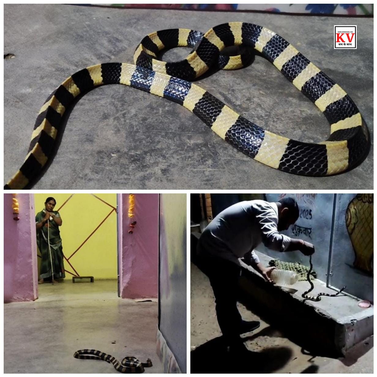 कोरबा : कोरबा जिले के रजगामार क्षेत्र अंतर्गत ओमपुर बस्ती में रात्रि लगभग 9 बजे एक परिवार उस समय दहशत में आ गया, जब एक जहरीला अहिराज सर्प अचानक उनके घर में घुस आया। परिवार सोने की तैयारी में था, तभी वह सर्प दरवाजे के पास आकर बैठ गया। इस कारण सूरज कुमार की मां कमरे के भीतर ही फंस गईं और बाहर नहीं निकल पाईं। परिवार की ओर से तुरंत प्रतिक्रिया दी गई। महिला डंडा लेकर एक कोने में खड़ी रहीं जबकि सूरज कुमार और पड़ोसियों ने बिना देर किए वाइल्डलाइफ रेस्क्यू टीम के प्रमुख जितेंद्र सारथी को सूचना दी।