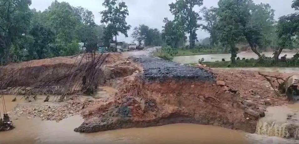 गौरेला-पेंड्रा-मरवाही। जिले में पिछले कई दिनों से जारी मूसलधार बारिश ने आम जनजीवन को बुरी तरह प्रभावित किया है। लगातार हो रही बारिश के चलते जिले के कई हिस्सों में जलभराव की स्थिति बन गई है जिससे लोगों को भारी परेशानियों का सामना करना पड़ रहा है। बारिश की वजह से वन विभाग द्वारा बनाए गए कई एनीकट टूटकर बह गए हैं जिससे स्थानीय जलस्रोतों और सिंचाई व्यवस्था को भी नुकसान पहुंचा है। वहीं निर्माणाधीन बिलासपुर-जबलपुर राष्ट्रीय राजमार्ग की स्थिति और भी चिंताजनक हो गई है। वर्षा से हाईवे का एक हिस्सा धंस गया है जबकि कई स्थानों पर सड़क और पुलिया भी टूट चुकी हैं।सालों से बन रहे इस हाईवे का काम अभी पचास प्रतिशत भी नहीं हुआ है कि कई जगहों से सड़क और पुलिया टूट चुकी हैं। हाईवे में कारिआम-जोगीसार के बीच बन रहे निर्माणाधीन पुलिया के कारण बनाया गया बाईपास सड़क बरसाती पानी के तेज बहाव को नहीं झेल सका और दो हिस्सों में टूटकर बंट गया जिसके चलते पेंड्रारोड से बिलासपुर को जोड़ने वाला यह मार्ग अवरुद्ध हो गया। अब वाहनों को डायवर्ट कर पेंड्रा और खोडरी के रास्ते बिलासपुर, अनूपपुर, शहडोल और जबलपुर की ओर जाना पड़ रहा है।