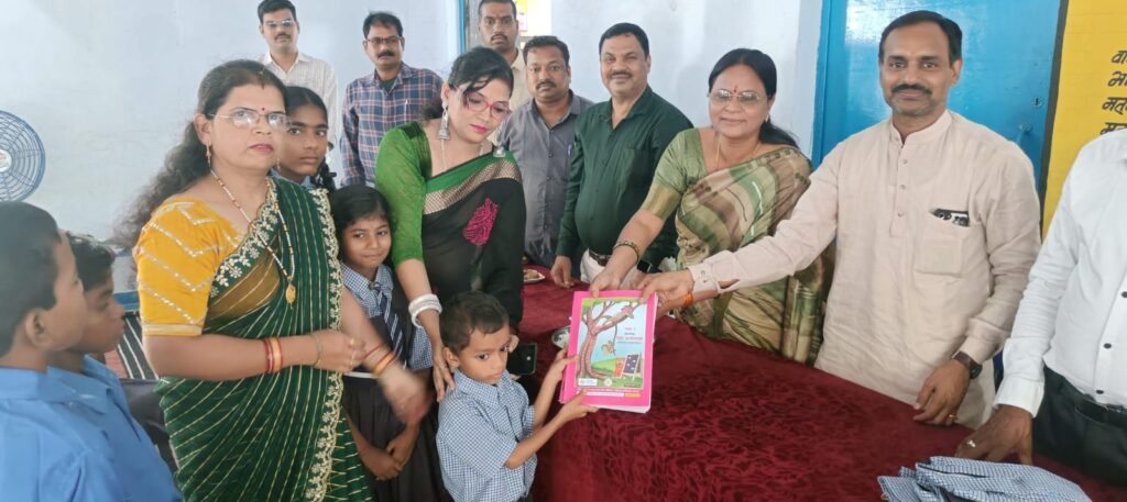 कार्यक्रम के दौरान अतिथियों ने बच्चों में पुस्तक, गणवेश और मिष्ठान वितरण किया। विद्यालय के शिक्षकगण और छात्र-छात्राएं भी उपस्थित थे ।