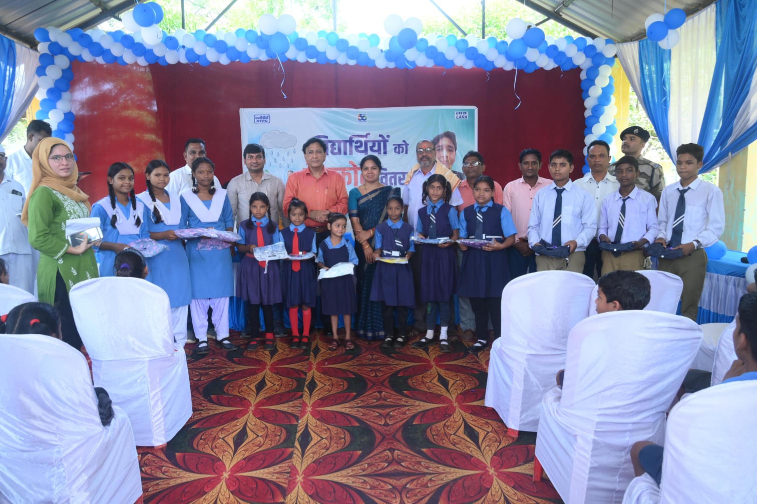 वितरण समारोह में अनिल कुमार (कार्यकारी निदेशक) एनटीपीसी लारा, जाकिर खान, अपर महाप्रबंधक (मानव संसाधन), और तरुण कुमार (सरपंच, ग्राम पंचायत महलोई), टी.आर. नंदे (प्रभारी विद्यालय प्रधानाचार्य), शिक्षकगण और विद्यार्थी उपस्थित रहे।