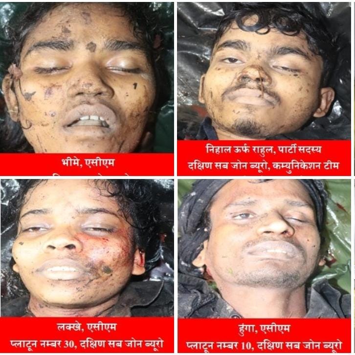 मुठभेड़ के बाद मृत माओवादियों की पहचान हुंगा, एसीएम, प्लाटून नंबर 10 दक्षिण सब जोनल ब्यूरो; लक्खे, एसीएम, प्लाटून नंबर 30, दक्षिण सब जोनल ब्यूरो; भीमे, एसीएम, दक्षिण सब जोनल ब्यूरो; और निहाल उर्फ राहुल, पार्टी सदस्य (संतोष, ब्यूरो कम्युनिकेशन टीम हेड का गार्ड) के रूप में हुई।