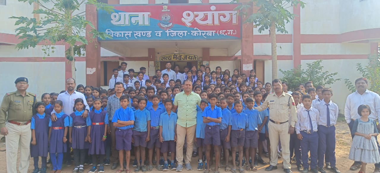 थाना श्याग,जिला कोरबा,18 नवंबर I बाल सुरक्षा सप्ताह के तहत शासकीय हायर सेकेंडरी स्कूल श्याग के छात्र व छात्राओं को थाना श्याग आमंत्रित किया गया। जो छात्र एवं छात्राएं शिक्षकगणों के साथ थाना उपस्थित आए। थाना श्याग परिसर में भ्रमण कराकर थाना भवन की जानकारी दी गई। साथ ही थाना भवन के अंदर थाना प्रभारी कक्ष, मोहर्रिर कक्ष, विवेचक कक्ष, रीडर कक्ष, सीसीटीएनएस कक्ष, पुरुष बंदी गृह, महिला बंदी गृह, मालखाना कक्ष का भ्रमण कराकर कक्षों में कार्यरत अधिकारियों कर्मचारियों से परिचय कराते हुए कार्यों की विस्तृत जानकारी दी गई।