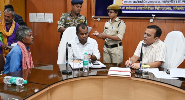 तहसील अकलतरा अंतर्गत ग्राम अमरताल निवासी देवनंदन जांगड़े ने अपने पुत्र की अंकसूची में जन्मतिथि सुधार के लिए आवेदन प्रस्तुत किया, जिस पर कलेक्टर ने संबंधित अधिकारी को सुधार कराने के निर्देश दिए। जनदर्शन में राशन कार्ड, पीएम आवास तथा अन्य विषयों से संबंधित कुल 42 आवेदन प्राप्त हुए, जिनके निराकरण हेतु आवश्यक कार्यवाही किये जाने के निर्देश दिए।