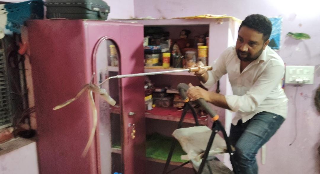 कोरबा – आज कोरबा जिले के साथ पूरे भारत में नाग पंचमी के अवसर पर मंदिरों में नागों की विशेष पूजा पाठ किया जा रहा हैं आज के दिन नाग देवता के दर्शन के साथ पूजा पाठ का विशेष महत्व है, ऐसा ही जब पोड़ी बाहर में रहने वाले एक परिवार के घर जब एक कमरे में कोबरा (नाग )दिखाई दिया फिर क्या था पूरा मोहल्ला इकट्ठा होना शुरू हो गया साथ ही उसकी आवाज सुन कर घर वाले काप गए जहां लोगों में सांपों के प्रति आस्था हैं वहीं डर भी रहता हैं पर उसकी अलसी पूजा उसके बचाने के कार्य से सफल हो जाता हैं उसके संरक्षण के उद्देश्य से परिवार वालों ने उसकी जानकारी कोरबा जिले के रेस्क्यु टीम प्रमुख जितेंद्र सारथी को दिया गया जिस पर उन्होंने थोड़ी देर में पहुंचने की बात कही फिर जब वहां पहुंचे तो देखा वो कोबरा सांप कमरे के छज्जे में सामानों के बीच बैठा था फिर बड़ी सावधानी से सभी सामान को हटाया गया फिर उसको सफलता पूर्वक रेस्क्यु किया गया तब जाकर सभी ने राहत भरी सांस लिया और जितेंद्र सारथी का धन्यवाद् ज्ञापित किया फिर उसे सुरक्षित जंगल छोड़ दिया गया।