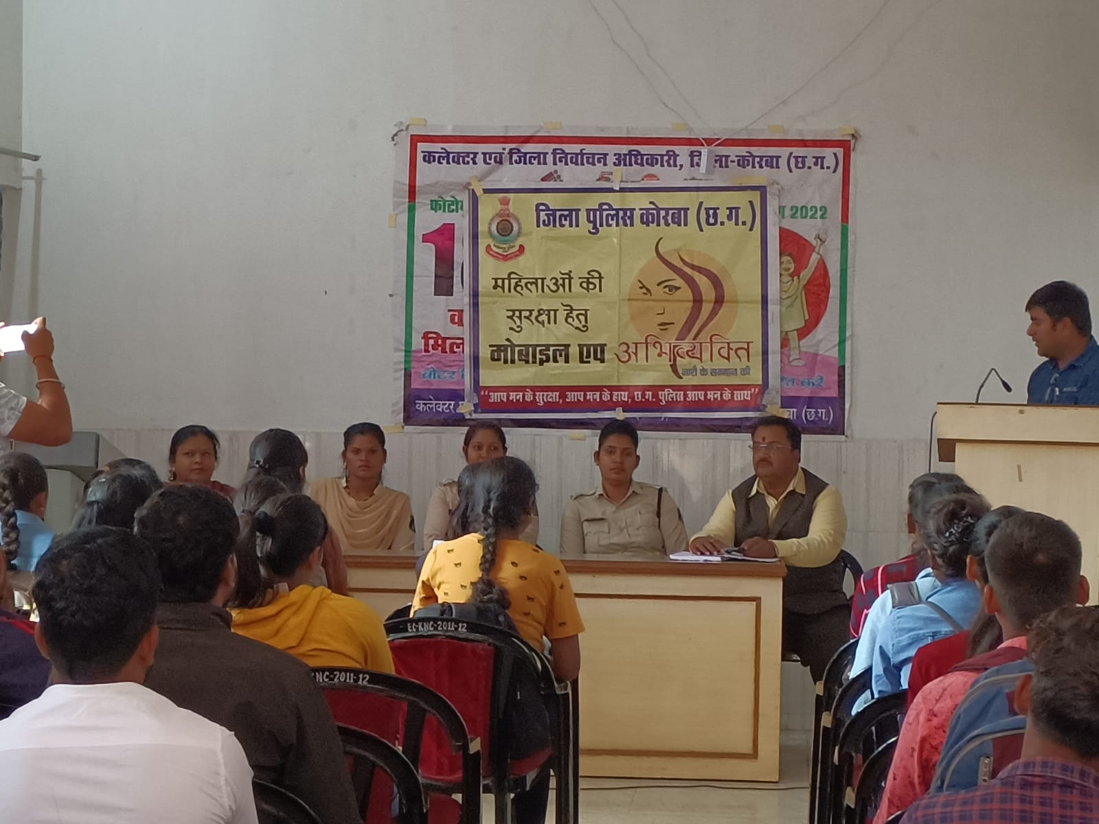 KORBA,19 NOVEMBER I पुलिस अधीक्षक संतोष सिंह के दिशा-निर्देश पर शुक्रवार को जिला पुलिस कोरबा की ओर से कमला नेहरू महाविद्यालय में एक जागरुकता कार्यक्रम आयोजित किया। इस दौरान पुलिस विभाग की टीम ने महाविद्यालय के विद्यार्थियों को महिलाओं की सुरक्षा के लिए लॉच किए गए अभिव्यक्ति एप के संबंध में महत्वपूर्ण जानकारियां प्रदान की।