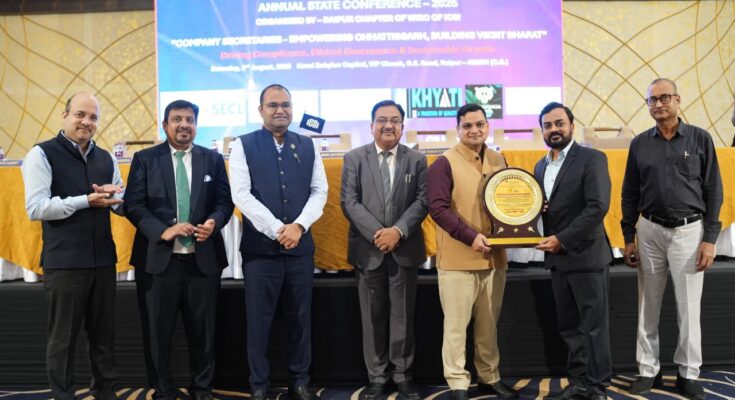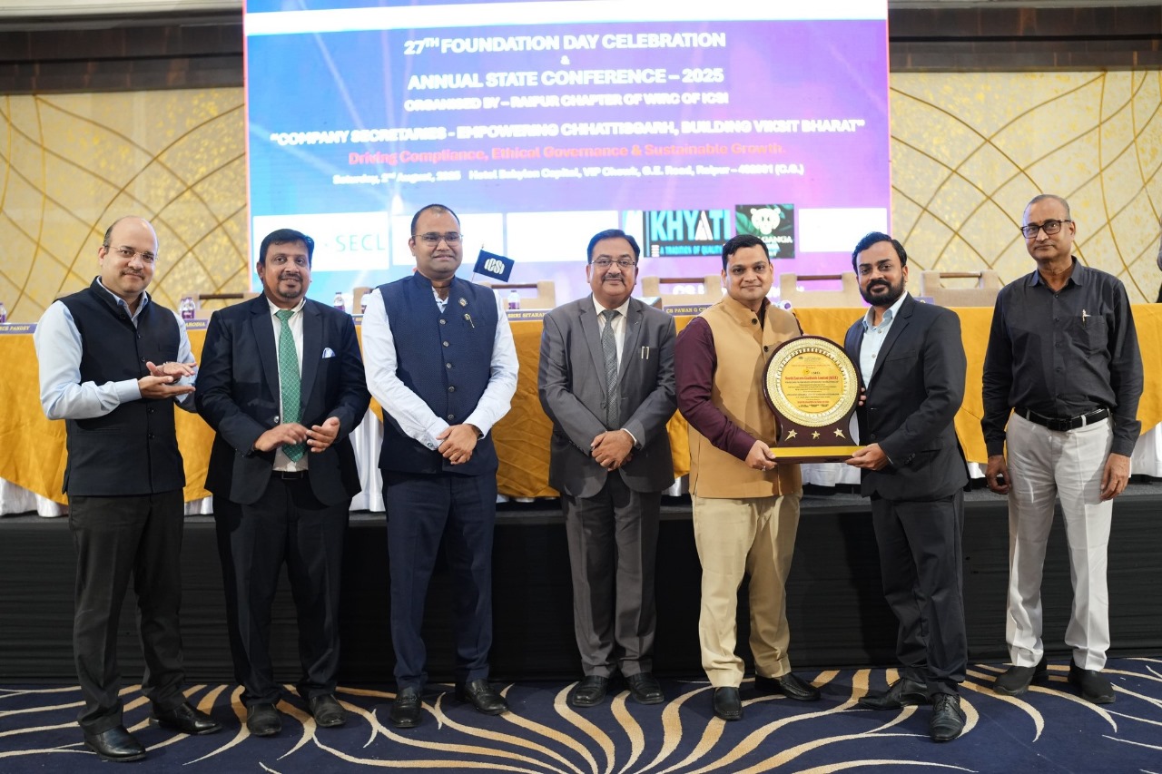 बिलासपुर । एसईसीएल को कॉर्पोरेट सामाजिक दायित्व (CSR), वित्तीय उत्कृष्टता तथा कॉर्पोरेट गवर्नेंस के क्षेत्र में उल्लेखनीय कार्य के लिए इंस्टीट्यूट ऑफ कंपनी सेक्रेटरीज़ ऑफ इंडिया (ICSI) के रायपुर चैप्टर द्वारा सम्मानित किया गया है । यह सम्मान वेस्टर्न इंडिया रीजनल काउंसिल के तत्वावधान में आयोजित राज्य स्तरीय वार्षिक सम्मेलन 2025 के दौरान प्रदान किया गया।