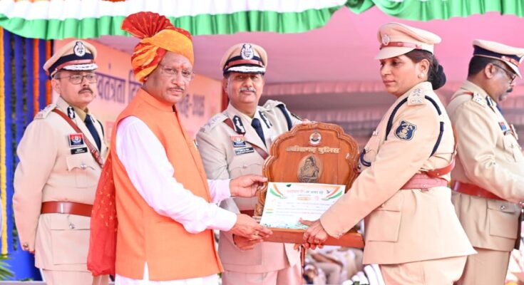 रायपुर। पुलिस परेड ग्राउंड में आयोजित स्वतंत्रता दिवस समारोह के मुख्य आयोजन में मुख्यमंत्री साय ने 35 पुलिस अधिकारियों और जवानों को उत्कृष्ट सेवा के लिए पुलिस पदकों से सम्मानित किया। साय ने पुलिस वीरता पदक से 11, राष्ट्रपति पुलिस पदक से 01, सराहनीय सेवा के लिए पुलिस पदक से 11, सुधार सेवा पदक से 05, गृहरक्षक एवं सराहनीय सेवा पदक 01 और राज्य स्तरीय एवं पुलिस महानिदेशक पदकों से 06 अधिकारी-कर्मचारियों को अलंकृत किया।