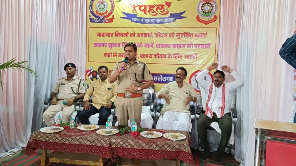मुंगेली, 22 अगस्त। मुंगेली पुलिस ने अपने “पहल” अभियान के तहत मंगल भवन गांधी मैदान जरहागांव में एक जागरूकता कार्यक्रम का आयोजन किया। इस कार्यक्रम में नगर के गणमान्य नागरिकों सहित जिला पंचायत अध्यक्ष श्रीकांत पाण्डेय और उपाध्यक्ष प्रतिनिधि देवचरण भास्कर ने भाग लिया।