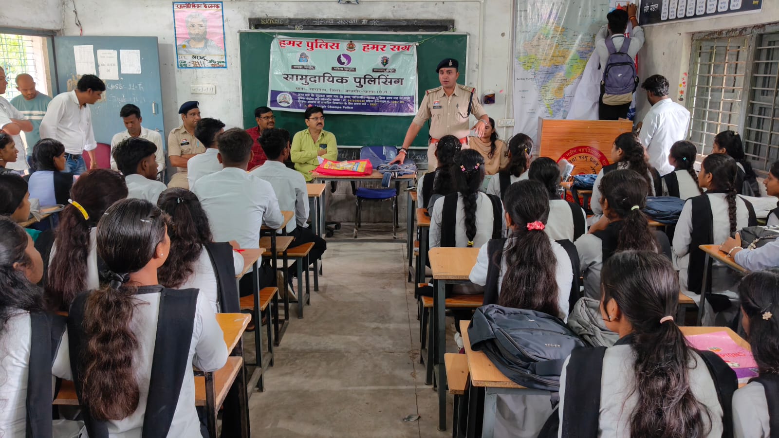 जांजगीर-चाम्पा, 23 अगस्त । जांजगीर-चाम्पा पुलिस ने आज शनिवार को सारागांव के नवीन महाविद्यालय में एक महत्वपूर्ण जन जागरूकता कार्यक्रम आयोजित किया। इस कार्यक्रम में छात्र/छात्राओं और शिक्षकगण सहित लगभग 200 लोग शामिल हुए।