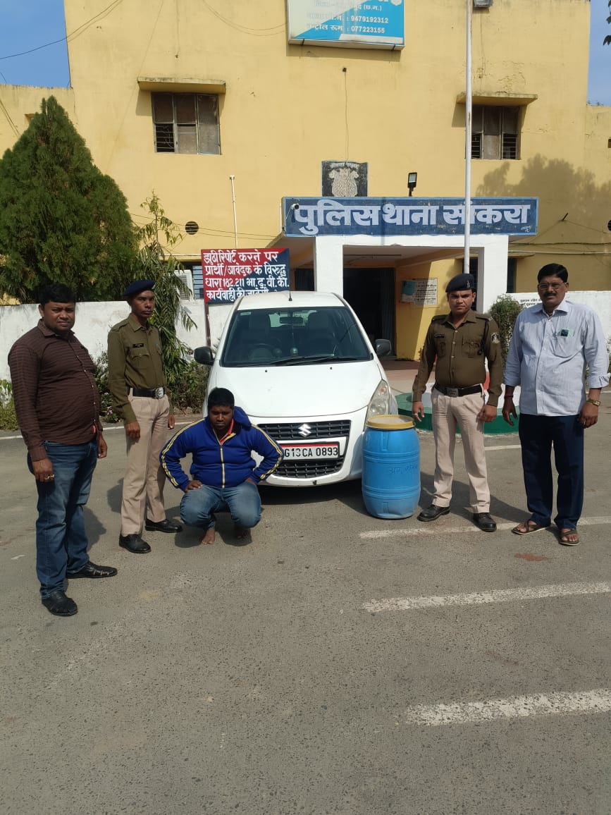 कि दिनाक 18.11.2022 मुखबीर से सूचना मिला की ग्राम भगत देवरी ओवर ब्रिज के नीचे एक व्यक्ति भारी मात्रा में मारुति RITZ कार में अवैध शराब बिक्री करने हेतु रखा है की सूचना पाकर थाना सांकरा स्टाफ द्वारा घेराबंदी कर पकड़ा गया कार की तलाशी ली गई जिसमे डिक्की में रखे 50 लीटर वाली नीला ड्रम में भरा 50 लीटर महुआ शराब मिला आरोपी के नाम पता पूछने पर हेमंत खूंटे पिता जयराम खूंटे उम्र 29 साल साकिन पिलवापाली थाना बसना के पास से महुआ शराब 50 लीटर जिसकी कीमत ₹10000 एव एक सफेद रंग मारुति RITZ कार क्रमांक CG-13-CA-0893 जिसकी कीमत 1,50,000 एव एक नग