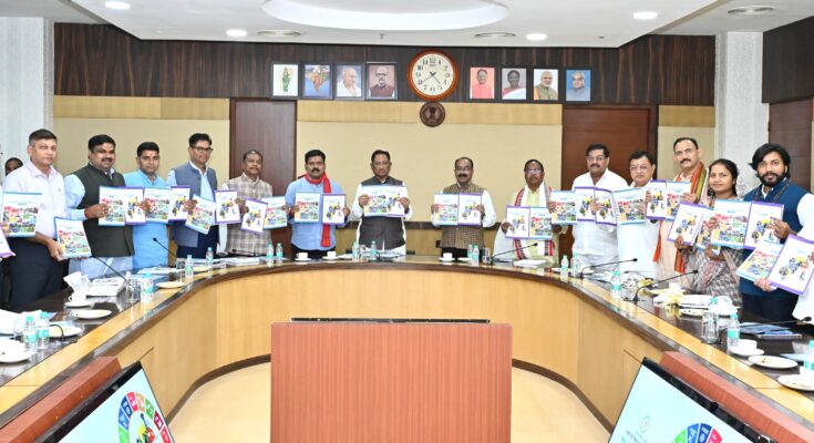 रायपुर, 09 सितम्बर 2025/ मुख्यमंत्री विष्णु देव साय ने आज नवा रायपुर स्थित मंत्रालय में आयोजित मंत्रिमंडल की बैठक के दौरान राज्य नीति आयोग, छत्तीसगढ़ द्वारा तैयार “सतत विकास लक्ष्य (SDG) राज्य एवं जिला प्रगति रिपोर्ट 2024” का विमोचन किया। इस अवसर पर मंत्रिपरिषद के सभी सदस्य उपस्थित थे।