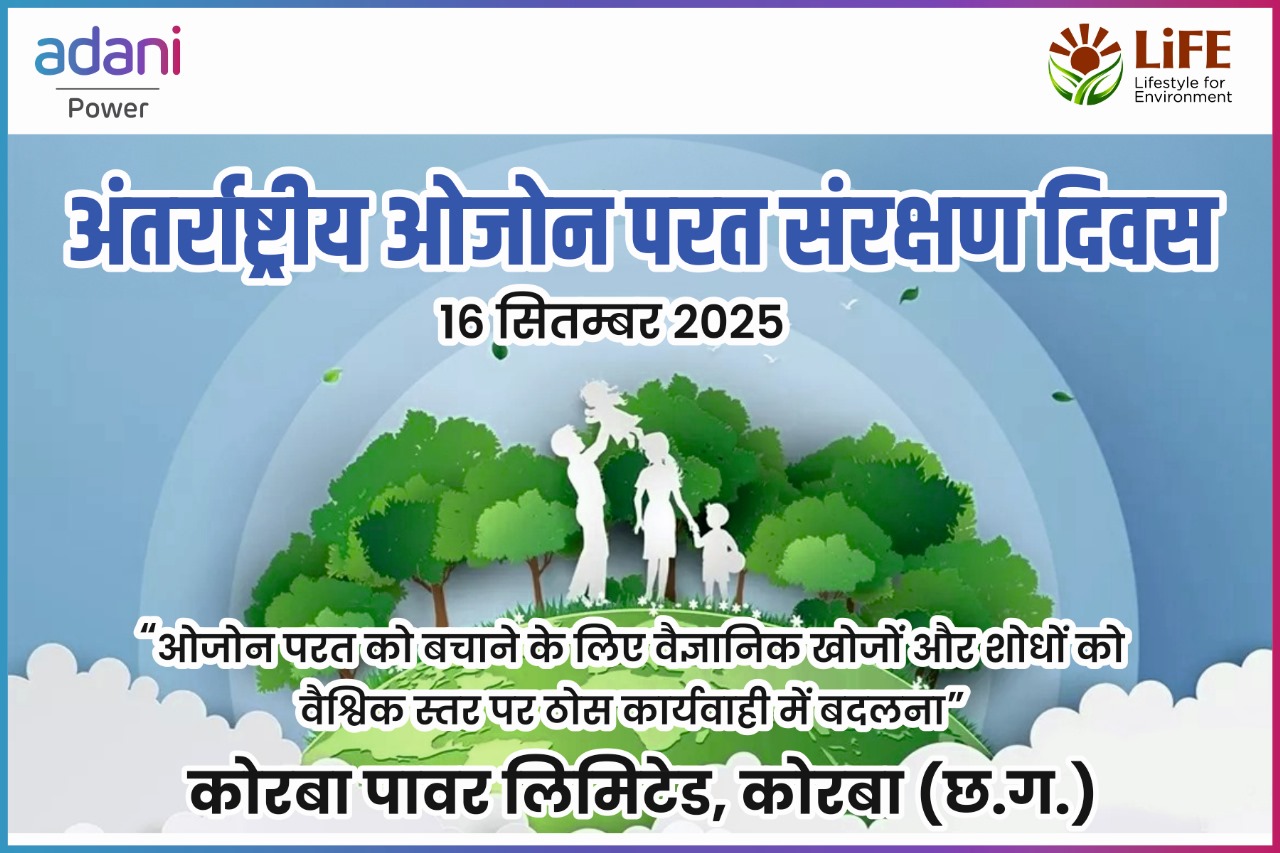 कोरबा, 13 सितंबर 2025: जिले के बरपाली तहसील में स्थित अदाणी कोरबा पावर लिमिटेड (केपीएल),पताड़ी में विश्व ओज़ोन दिवस और सेवा पर्व के उपलक्ष्य में विशेष जागरूकता कार्यक्रमों का आयोजन किया जाएगा। केपीएल संयंत्र के पर्यावरण विभाग द्वारा 16 से 20 सितंबर तक आयोजित किए जाने वाले इस अभियान में इस वर्ष की थीम “विज्ञान से वैश्विक कार्रवाई की ओर” है, जो पर्यावरण संरक्षण एवं ओजोन परत की सुरक्षा के प्रति जन-जागरूकता बढ़ाने हेतु समर्पित है तथा “सेवा पर्व” की भावना के अनुरूप है।