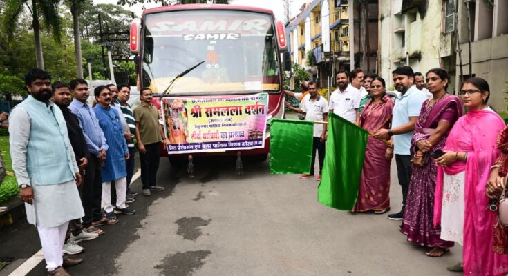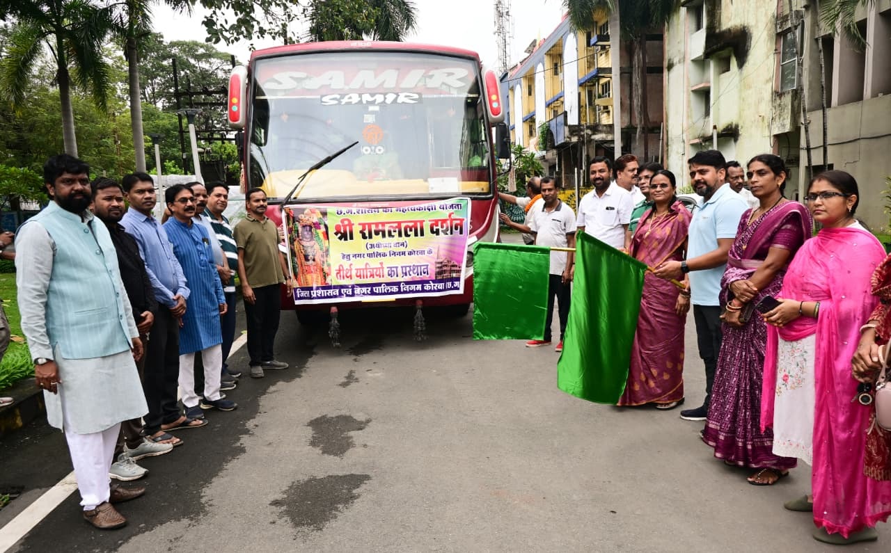 छत्तीसगढ़ सरकार की महती योजना श्रीरामलला दर्शन योजना के अंतर्गत प्रदेश के नागरिकों को पवित्र अयोध्याधाम ले जाकर भगवान श्रीरामलला जी के दर्शन प्रतिमाह कराए जा रहे हैं, जिसका सम्पूर्ण व्यय शासन द्वारा वहन किया जाता है। इसी कड़ी में इस माह भी कोरबा से 35 तीर्थयात्रियों का दल श्रीरामलला दर्शन हेतु अयोध्याधाम के लिए रवाना हुआ, यह दल बस के माध्यम से बिलासपुर के उस्लापुर रेलवे स्टेशन पहुंचा, वहॉं से विशेष ट्रेन द्वारा तीर्थयात्री अयोध्याधाम पहुंचकर श्रीरामलला जी के दर्शन का पुण्य लाभ प्राप्त करेंगे। नगर पालिक निगम कोरबा के मुख्य प्रशासनिक भवन साकेत में आज प्रातः 08 बजे महापौर श्रीमती संजूदेवी राजपूत एवं आयुक्त श्री आशुतोष पाण्डेय ने हरी झण्डी दिखाकर दल को रवाना किया, इस मौके पर महापौर श्रीमती राजपूत ने कहा कि यह सौभाग्य का विषय है कि प्रभु श्रीरामलला के दर्शन हेतु जा रहे श्रद्धालुजनों को यात्रा पर रवाना करने का पवित्र अवसर आज पुनः प्राप्त हुआ है, उन्होने कामना करते हुए कहा कि ईश्वर उनकी यात्रा को मंगलमय करें तथा श्रद्धालुजन रामलला के चरणों का दर्शन कर पुण्य लाभ अर्जित करें।