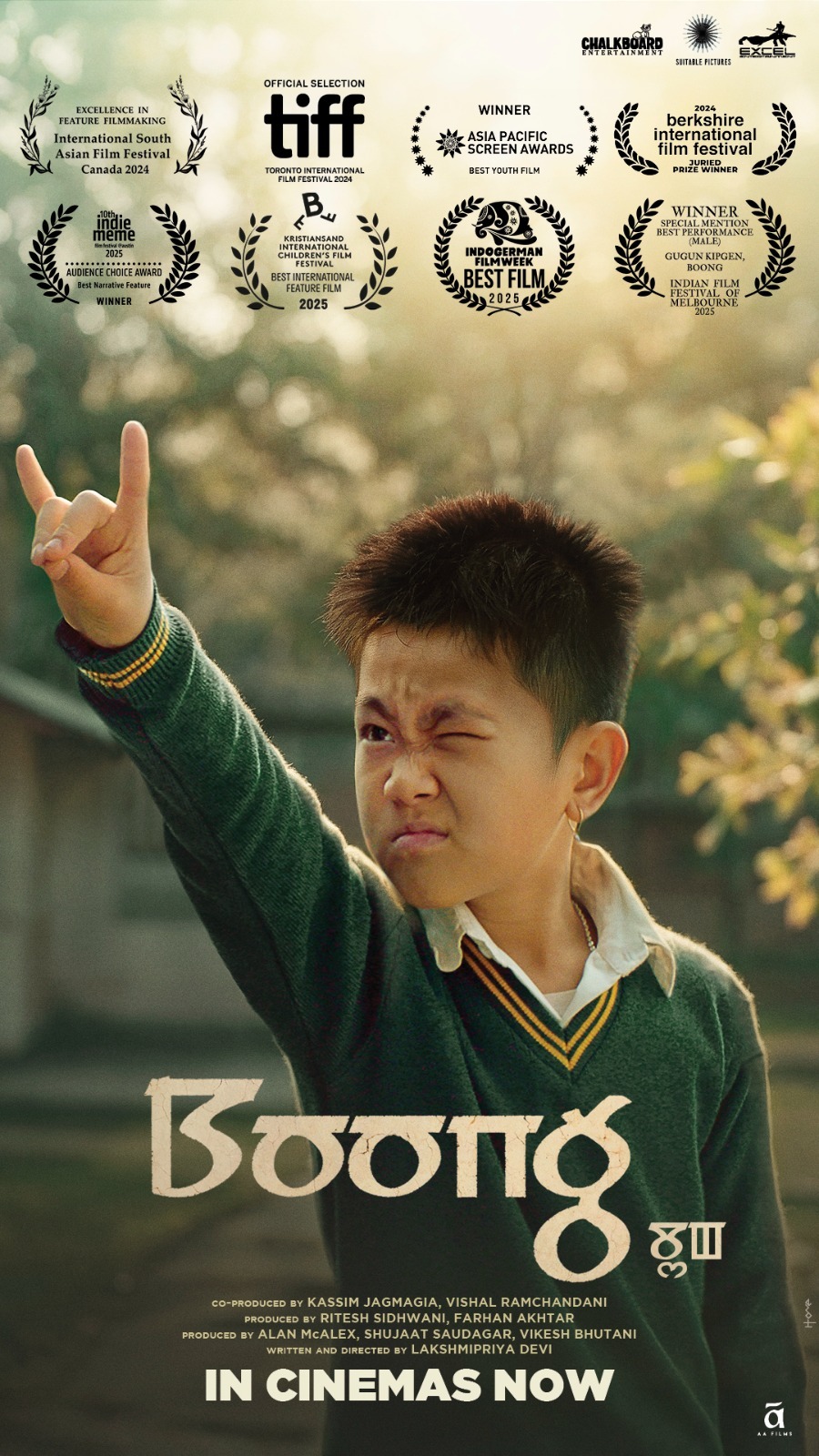 मणिपुरी फिल्म ‘बूंग’ , जिसे लक्ष्मीप्रिया देवी ने लिखा और निर्देशित किया है, अब बड़े पर्दे पर दर्शकों से रूबरू हो चुकी है। इस फिल्म को भारत की मशहूर प्रोडक्शन कंपनी Excel Entertainment (रितेश सिधवानी और फरहान अख्तर), Chalkboard Entertainment और Suitable Pictures ने प्रस्तुत किया है।