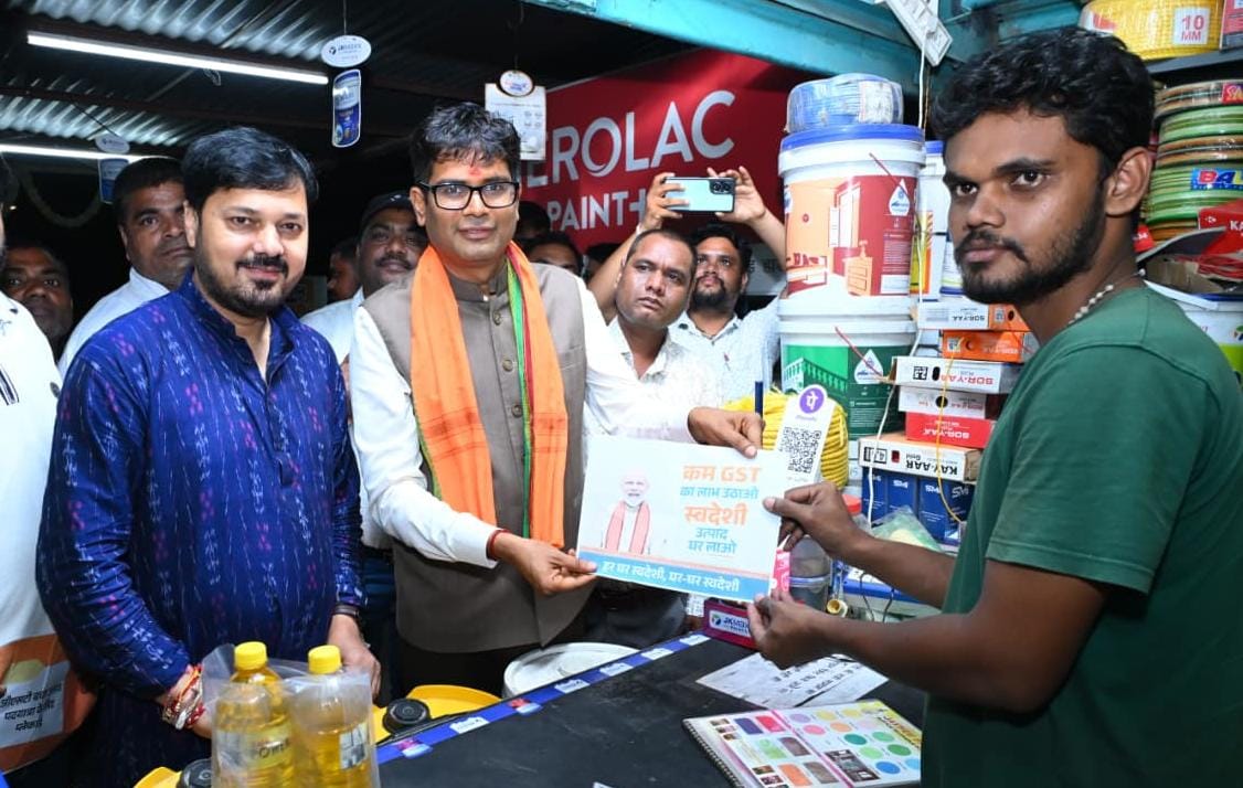 रायपुर 24 सितंबर/ छत्तीसगढ़ में जीएसटी दरों में कटौती का लाभ सीधे जनता तक पहुँचे, इसके लिए राज्य सरकार ने विशेष अभियान शुरू किया है। वित्त मंत्री ओ. पी. चौधरी ने आज राजधानी के विभिन्न बाजारों का दौरा कर दुकानदारों और उपभोक्ताओं से संवाद किया तथा सुधारों का असर ज़मीनी स्तर पर सुनिश्चित करने की बात कही। इस अवसर पर विधायक अनुज शर्मा भी उपस्थित थे।
