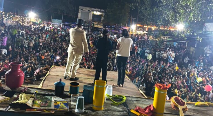 कोरबा: जादूगर कुनाल छत्तीसगढिया ने दिखया बस स्टैंड दुर्गा पंडाल में अपना करतब