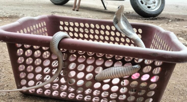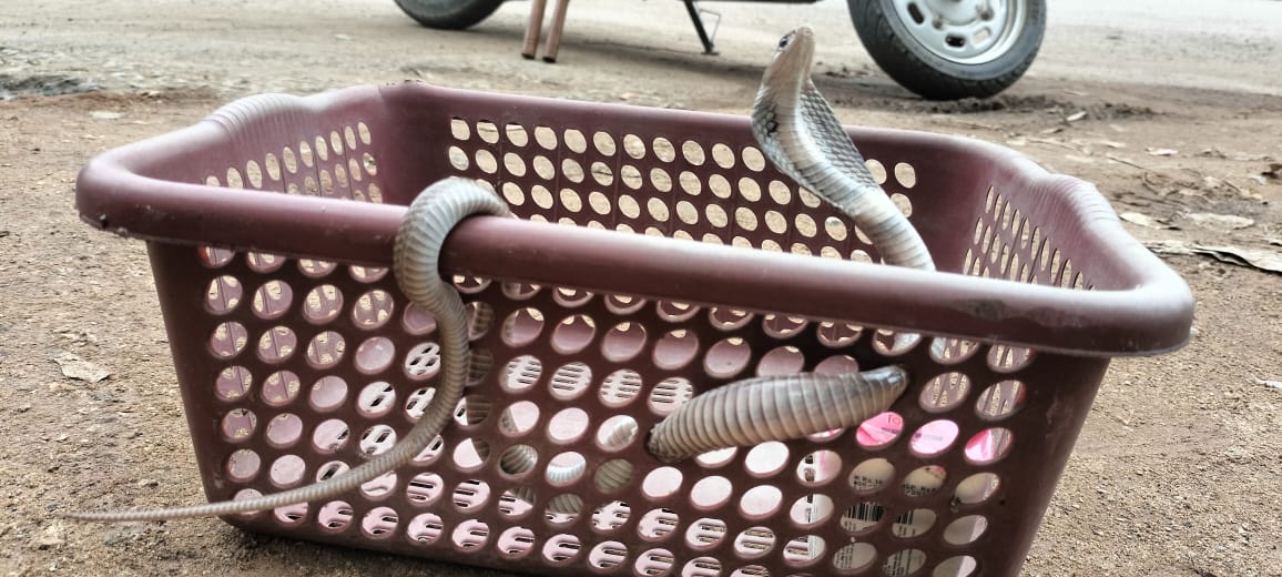 कोरबा – एक दुकानदार उस समय डर से कांप उठा जब एक कोबरा फन फैलाए टोकरी में दिखाई दिया वही आवाज करने लगा, दुकानदार को यह दृश्य सामान्य लगा पर जब हिम्मत कर उस प्लास्टिक के बास्केट को दुकान से बाहर निकाला तो देखा वो कोबरा (नाग) उसमें पूरी तरफ फंसा हुआ था जो आसानी से नहीं निकल सकता था इस बात को समझते देर नहीं लगी फिर आखिकार इसकी सूचना नोवा नेचर संस्था के जितेंद्र सारथी को दिया गया जिस पर सारथी ने थोड़ी देर में टीम को भेजने की बात कही, फिर कुछ देर बाद नोवा नेचर के सचिव मोइज एहमद और बबलू मारवा उस दुकान में पहुंचे और बड़ी सावधानी से प्लास्टिक के बकेट को धार दार हथियार से काटा गया आखिरकार कोबरा सांप निकल पाने में कामयाब हुआ जिसके वजह से उसकी जान बच गई तब जाकर दुकान मालिक ने राहत भरी सांस लिया फिर कोबरा सांप को सुरक्षित प्राकृतिक रहवास जंगल में छोड़ दिया गया।