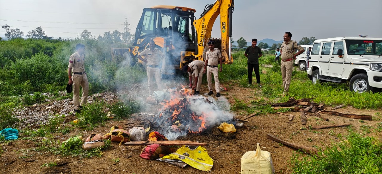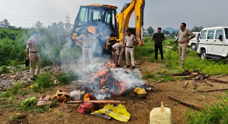 मादक पदार्थों पर सर्जिकल स्ट्राइक: पुलिस अधीक्षक की उपस्थिति में किया गया भारी मात्रा में नशे का नष्टीकरण
