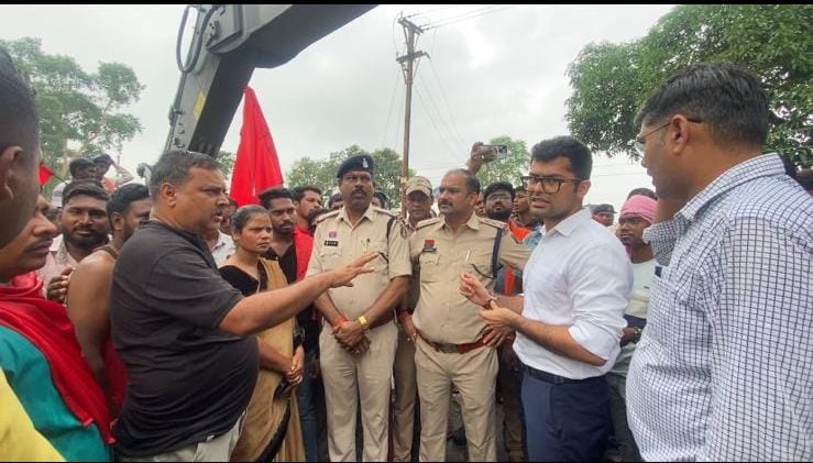 कोरबा,06 अक्टूबर 2025। एसईसीएल गेवरा प्रबंधन ने कुसमुंडा हरदीबाजार मुख्य मार्ग को खदान विस्तार के लिए जेसीबी लगाकर कटघोरा एसडीएम और दीपका,कुसमुंडा, हरदी बाजार के थाना प्रभारी के साथ भारी पुलिस बल की उपस्तिथि में रोड काटना शुरू कर दिया किसान सभा के नेतृत्व में आस पास गांव के भू विस्थापितों ने रोड काटने और गेवरा खदान विस्तार का भारी विरोध किया इस बीच पुलिस बल,प्रशासन और एसईसीएल के साथ ग्रामीणों का काफी नोंक झोंक हुई भारी विरोध के बाद एसईसीएल को फिलहाल काम बंद करना पड़ा है।