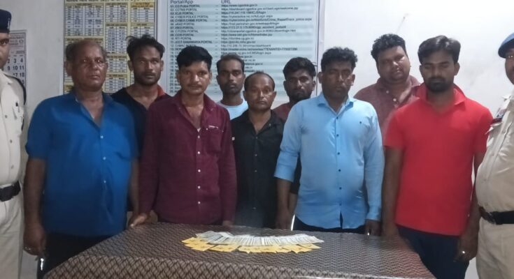 जांजगीर-चांपा, 07 अक्टूबर । पुलिस अधीक्षक जांजगीर -चाम्पा विजय कुमार पाण्डेय के निर्देशन में जुआ सट्टा पर प्रभावी अंकुश लगाने हेतु पुलिस द्वारा लगातार कार्यवाही की जा रही है कि इसी क्रम में अतिरिक्त पुलिस अधीक्षक उमेश कुमार कश्यप के कुशल मार्गदर्शन में थाना पामगढ़ पुलिस द्वारा आज पामगढ़ क्षेत्र के ग्राम कोसीर में रेड कार्यवाही कर जुआ खेल रहे 9 जुआडियानों को पकड़ा गया।