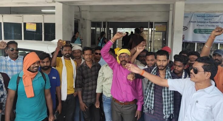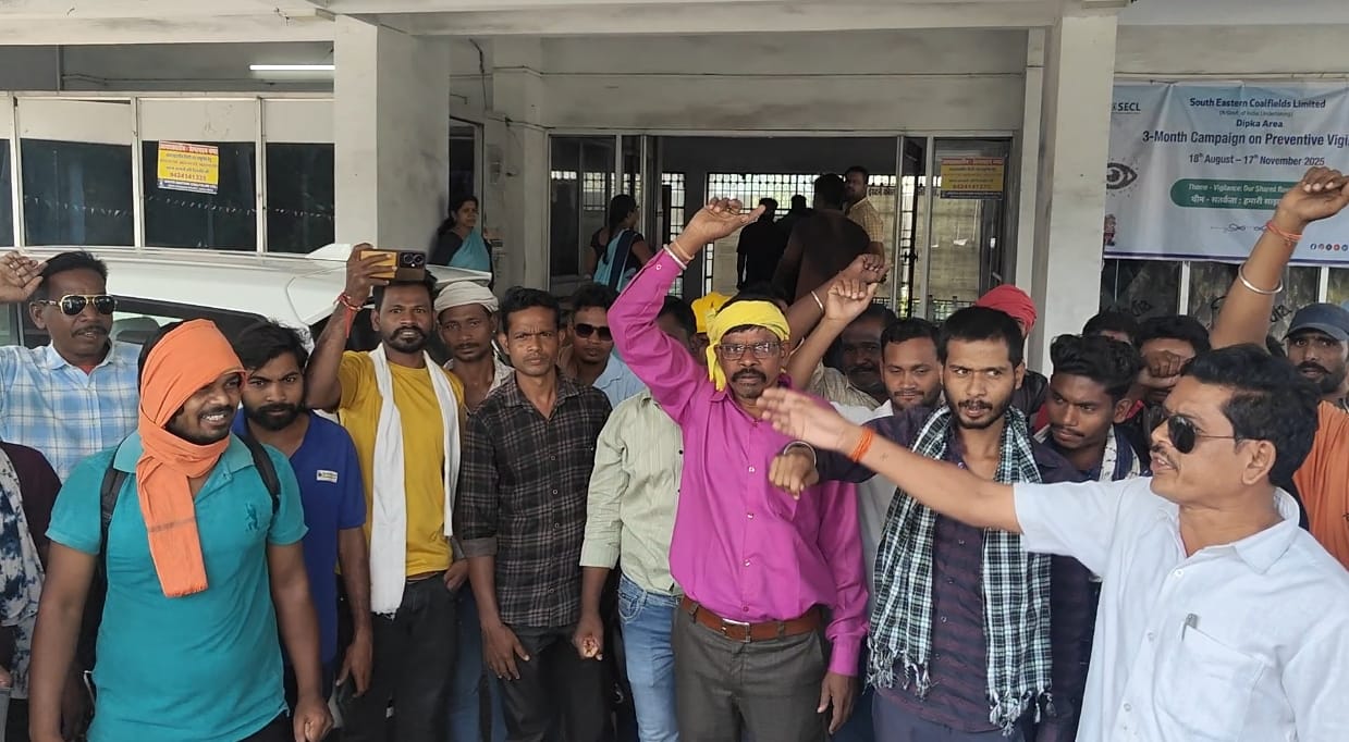 दीवाली से पहले दीपका क्षेत्र में ठेका मजदूरों का सब्र टूट गया। दक्षिण पूर्वी कोलफील्ड्स लिमिटेड (SECL) के मुख्य महाप्रबंधक कार्यालय के बाहर शुक्रवार को सैकड़ों मजदूरों ने “बोनस दो — हक दो” और “प्रबंधन होश में आओ” के नारों के साथ जोरदार प्रदर्शन किया।