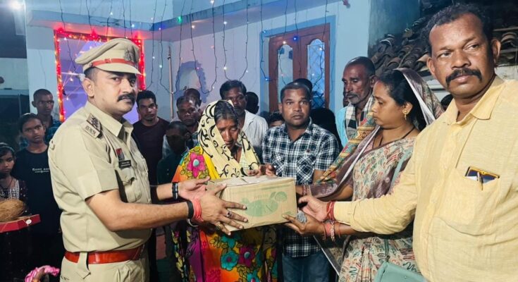 कोरबा,19 अक्टूबर 2025। दीपावली के शुभ अवसर पर कटघोरा थाना प्रभारी धरम नारायण तिवारी ने छोटकी छुरी गांव पहुँचकर शहीद विनोद भारिया के तैलचित्र पर माल्यार्पण कर श्रद्धांजलि अर्पित की। उन्होंने शहीद के परिजनों से भेंट कर उन्हें दीपावली की हार्दिक शुभकामनाएं दीं और उपहार एवं मिठाई भेंट की।