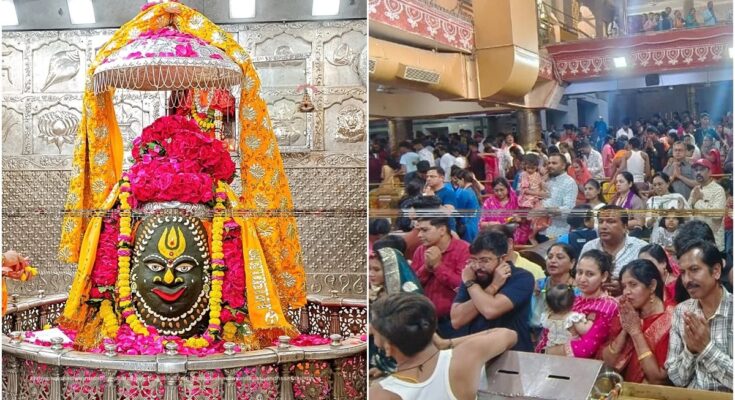 उज्जैन, 24 अक्टूबर। ज्योतिर्लिंग महाकाल मंदिर में दीपावली के बाद दर्शनार्थियों की संख्या बढ़ गई है। मंदिर प्रशासन के अनुसार गुरुवार को डेढ़ लाख से अधिक भक्तों ने भगवान महाकाल के दर्शन किए। दो दिनों में ढाई लाख श्रद्धालुओं ने भगवान के दर्शन किए। आने वाले दिनों में शनिवार, रविवार व कार्तिक शुक्ल पक्ष का सोमवार होने से दर्शनार्थियों की संख्या में लगातार बढ़ोतरी का अनुमान है।
