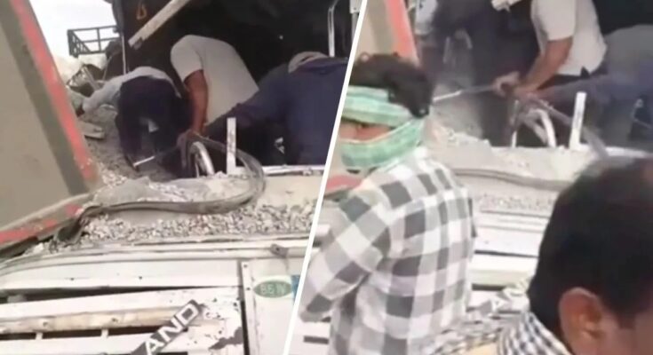 रंगारेड्डी पुलिस के अनुसार बजरी लेकर जा रहे डंपर और बस के बीच आमने-सामने टक्कर हुई है, इसमें 20 लोगों की जान चली गई और कई घायल हैं। घायलों को इलाज के लिए पास के अस्पताल में भेजा गया है। टक्कर के बाद डंपर में भरी हुई बजरी बस पर गिर गई। जानकारी के मुताबिक हादसा रंगारेड्डी जिले के चेवेल्ला पुलिस स्टेशन क्षेत्र के खानापुर गेट के पास हुआ है। हादसे के बाद मौके पर भारी भीड़ जमा होग गई थी। आस-पास के लोग बस में सवार लोगों को बाहर निकालने में जुट गए थे।
