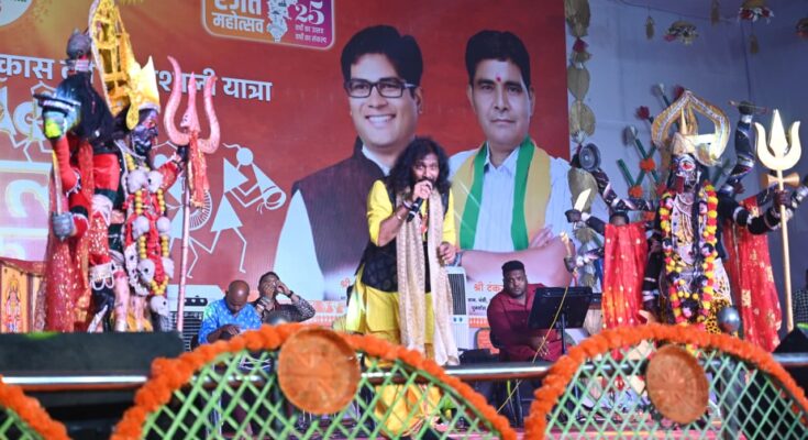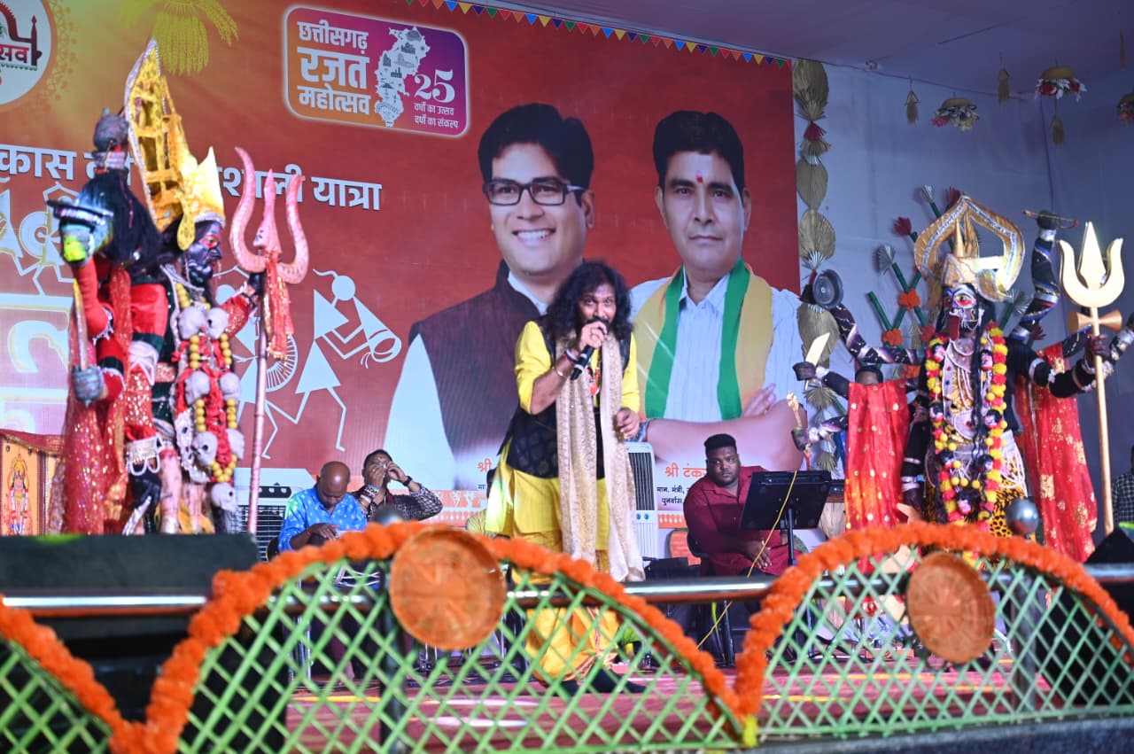 जांजगीर-चांपा, 3 नवम्बर 2025/ छत्तीसगढ़ रजत जयंती महोत्सव के अवसर पर जिला मुख्यालय के शासकीय हाई स्कूल मैदान में आयोजित जिला स्तरीय राज्योत्सव कार्यक्रम में प्रसिद्ध छत्तीसगढ़ी लोक गायक देवेश शर्मा (जय अम्बे जागरण ग्रुप) ने अपनी शानदार प्रस्तुति दी।