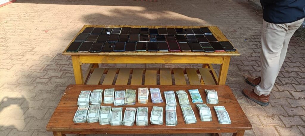 जुआड़ियों के कब्जे से 04 नग 52 पत्ती ताश, 43 नग विभिन्न कंपनी के मोबाईल एवं नगदी नकम 9,25,200/- रू. बरामद,