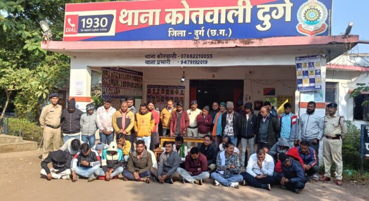 जुआड़ियों के विरूद्ध पर सिटी कोतवाली दुर्ग पुलिस की बड़ी कार्यवाही,