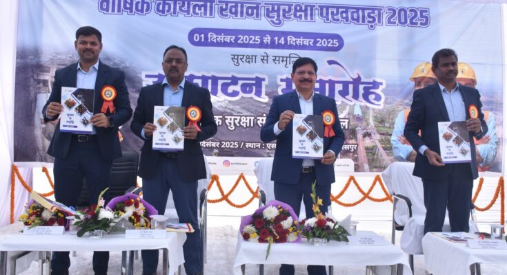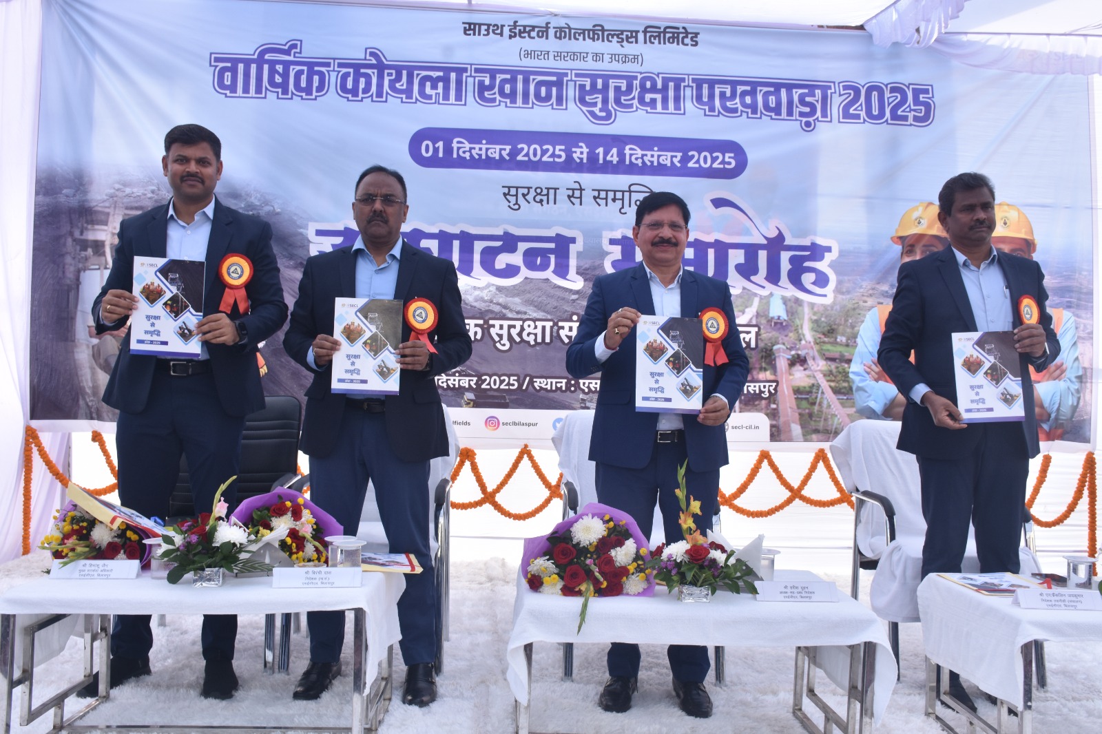 बिलासपुर, 01 दिसंबर । एसईसीएल मुख्यालय में वार्षिक कोयला खान सुरक्षा पखवाड़ा 2025 का विधिवत उद्घाटन 1 दिसंबर को किया गया। कार्यक्रम की शुरुआत अध्यक्ष सह प्रबंध निदेशक हरीश दुहन द्वारा सुरक्षा ध्वज फहराकर की गई। उनके साथ निदेशक तकनीकी (संचालन) एन. फ्रैंकलिन जयकुमार, निदेशक (कार्मिक) बिरंची दास, मुख्य सतर्कता अधिकारी हिमांशु जैन, विभागाध्यक्ष, अधिकारी-कर्मचारी एवं श्रम संघ प्रतिनिधि उपस्थित रहे। यह पखवाड़ा 1 दिसंबर से 14 दिसंबर 2025 तक चलेगा।