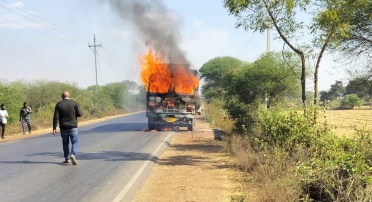 रायपुर, 08 दिसंबर। आरंग-खरोरा मुख्य मार्ग पर शनिवार को उस समय अफरा-तफरी मच गई, जब चावल से भरे एक ट्रक में अचानक भीषण आग लग गई। देखते ही देखते आग ने पूरे ट्रक को अपनी चपेट में ले लिया और ट्रक का केबिन पूरी तरह जलकर खाक हो गया। घटना के बाद सड़क पर वाहनों की आवाजाही कुछ देर के लिए बाधित रही और मौके पर लोगों की भीड़ जुट गई।