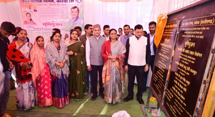 कोरबा 12 दिसम्बर 2025 -प्रदेश के उद्योग, वाणिज्य, श्रम, आबकारी व सार्वजनिक उपक्रम मंत्री लखनलाल देवांगन के मुख्य आतिथ्य एवं महापौर श्रीमती संजूदेवी राजपूत की अध्यक्षता में आयोजित कार्यक्रम में नगर पालिक निगम केारबा के वार्ड क्र. 01, 05, 06, 08 व 09 को 01 करोड़ 05 लाख रूपये के 06 विकास कार्यो की सौगात मिली। इस मौके पर सभापति नूतन सिंह ठाकुर सहित निगम की एम.आई.सी. के सदस्य व पार्षदगण विशिष्ट अतिथि के रूप में उपस्थित थे।