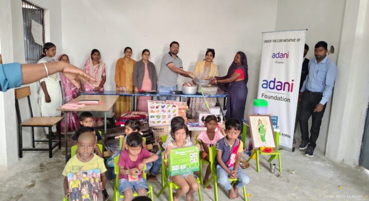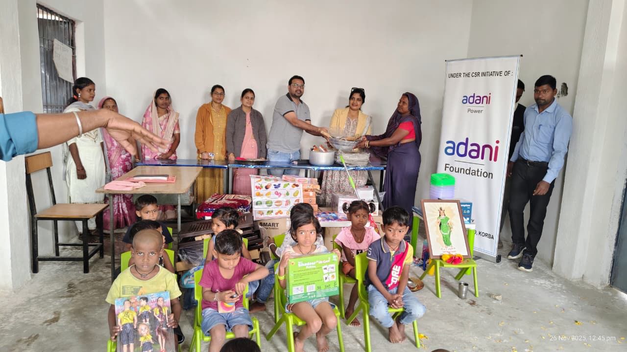 कोरबा, 14 दिसंबर 2025: जिले के बारपाली तहसील अंतर्गत कोरबा पावर लिमिटेड (केपीएल), पताड़ी ने अपनी सामाजिक उत्तरदायित्व पहल के तहत आंगनवाड़ी केंद्रों को सशक्त बनाने की दिशा में महत्वपूर्ण कदम उठाया गया। इस पहल के तहत अदाणी फाउंडेशन के माध्यम से आसपास की पाँच ग्राम पंचायतों के आठ गांवों में स्थित कुल 18 आंगनवाड़ी केंद्रों में रसोई के बर्तन, खेल कूद का सामान, कुर्सीयाँ, टेबल, अलमीरा, गद्दे इत्यादि जैसी आवश्यक सामग्रियों का वितरण किया गया।