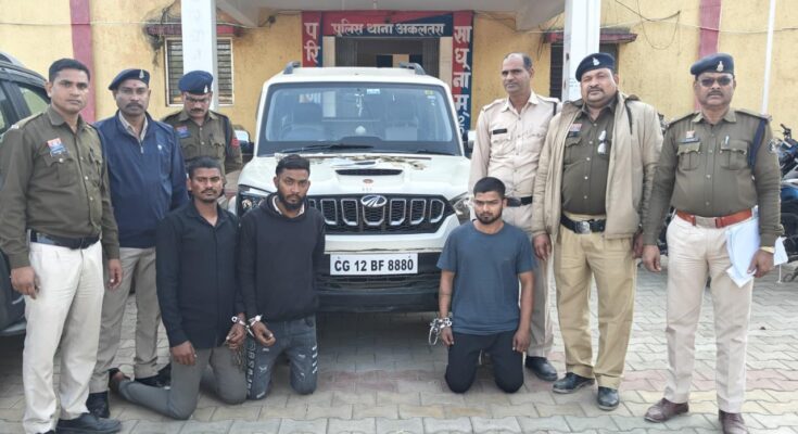 जांजगीर-चांपा, 18 दिसंबर 2025। थाना अकलतरा क्षेत्र अंतर्गत राष्ट्रीय राजमार्ग ओवरब्रिज पर हुई सनसनीखेज लूट की घटना का जांजगीर-चांपा पुलिस ने खुलासा करते हुए तीन आरोपियों को गिरफ्तार किया है। यह लूट की वारदात 15-16 अक्टूबर 2025 की मध्यरात्रि को अंजाम दी गई थी। पुलिस ने आरोपियों के कब्जे से लूट की नकदी, घटना में प्रयुक्त स्कॉर्पियो वाहन, चाकू एवं लोहे की रॉड बरामद की है।