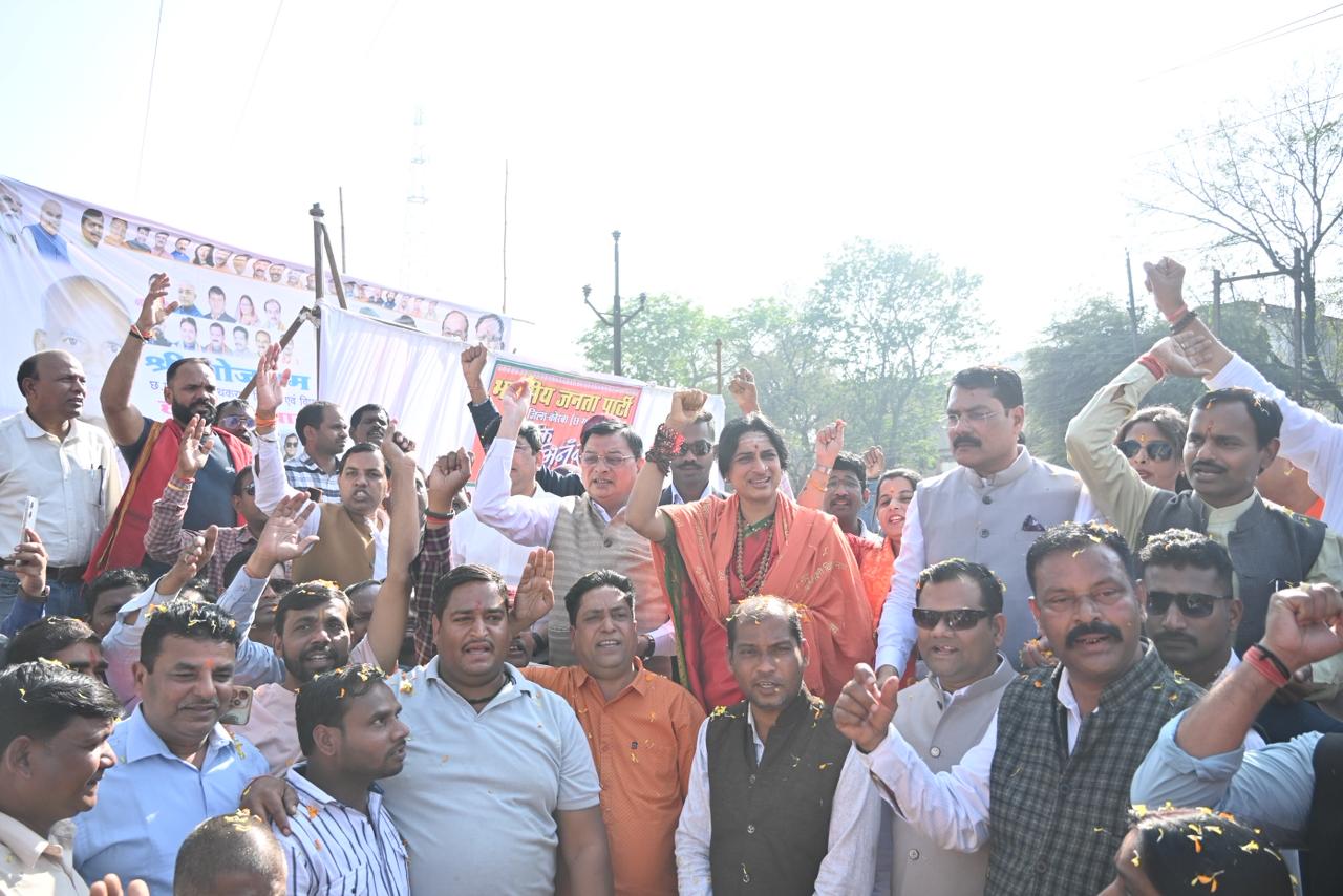 कोरबा,28 दिसंबर 2025। जिले में चल रही तीन अरब 33 करोड़ 33 लाख राम लेखन महायज्ञ की श्रृंखला के अंतर्गत गुरुवार को घंटाघर चौक से दशहरा मैदान आरपी नगर तक मातृशक्ति की विशाल एवं भव्य कौशल्या यात्रा निकाली गई। यात्रा के दौरान सुभाष चौक पर भारतीय जनता पार्टी द्वारा भव्य स्वागत कार्यक्रम आयोजित किया गया, जहां पुष्पवर्षा कर यात्रा में शामिल मातृशक्ति का अभिनंदन किया गया।