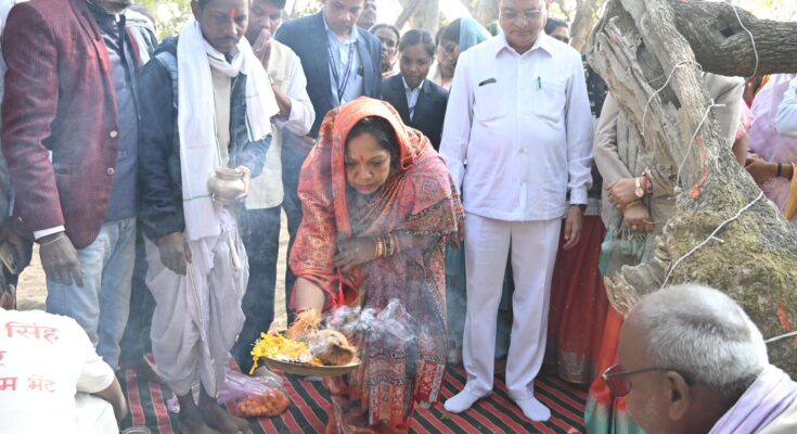 कोरबा। ग्राम सलोरा, दर्राभाठा में ग्राम वासियों द्वारा आयोजित सार्वजनिक बार महोत्सव 2025-26 के शुभारंभ अवसर पर मुख्यमंत्री विष्णु देव साय की धर्मपत्नी श्रीमती कौशल्या देवी साय और कैबिनेट मंत्री लखन लाल देवांगन सम्मिलित हुए। कार्यक्रम में सम्मिलित होकर ठाकुर देव एवं डोकरी दाई जी की पूजा अर्चना कर आशीर्वाद प्राप्त किया। इस अवसर पर श्रीमती कौशल्या साय ने कहा कि यह बहुत हर्ष का विषय है कि आज भी हमारा समाज अपनी पुरानी परंपरा को संजोय रखते हुए इतनी धूमधाम और हर्षोल्लास के साथ पूजन का आयोजन किया जा रहा है, उन्होंने कहा कि यह मेरा सौभाग्य है कि इस पूजा के शुभारंभ कार्यक्रम में सम्मिलित होने का अवसर प्राप्त हुआ है। उन्होंने समाज और ग्रामीण जनों को बधाई एवं शुभकामनाएं दी।