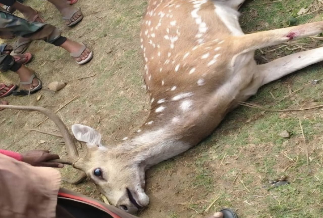 कोरबा,10 जनवरी 2025। छत्तीसगढ़ के कोरबा जिले के पाली वन परिक्षेत्र अंतर्गत ग्राम रंगोले में एक मादा वयस्क हिरण की दर्दनाक मौत हो गई। पानी और चारे की तलाश में गांव के पास पहुंची हिरण पर पहले आवारा कुत्तों ने हमला किया, जिसके बाद जान बचाकर भागते समय वह नेशनल हाईवे पर पहुंच गई और एक अज्ञात वाहन की चपेट में आ गई।