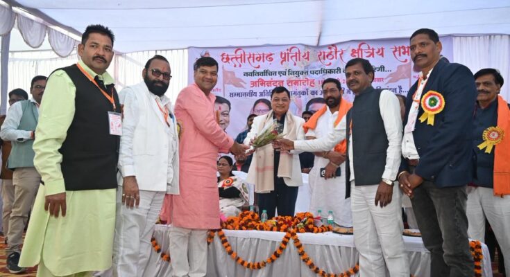 कोरबा। छत्तीसगढ़ प्रांतीय राठौर क्षत्रिय सभा जिला कोरबा के नवनिर्वाचित पदाधिकारी और कार्यकारिणी के अभिनंदन समारोह में मुख्य अतिथि के तौर पर कोरबा नगर विधायक, छ ग के कैबिनेट मंत्री लखन लाल देवांगन और कार्यक्रम की अध्यक्षता महापौर श्रीमती संजू देवी राजपूत शामिल हुए।