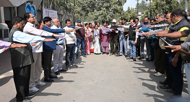 कोरबा,30 जनवरी 2026 -नगर पालिक निगम कोरबा के अधिकारी कर्मचारियों ने महात्मा गांधी की पुन्यतिथि के अवसर पर नशामुक्ति का संकल्प लिया तथा शपथ पत्र पर हस्ताक्षर किया। अपर आयुक्त विनय मिश्रा ने साकेत भवन परिसर में अधिकारी कर्मचारियों को नशामुक्ति का संकल्प दिलाया।