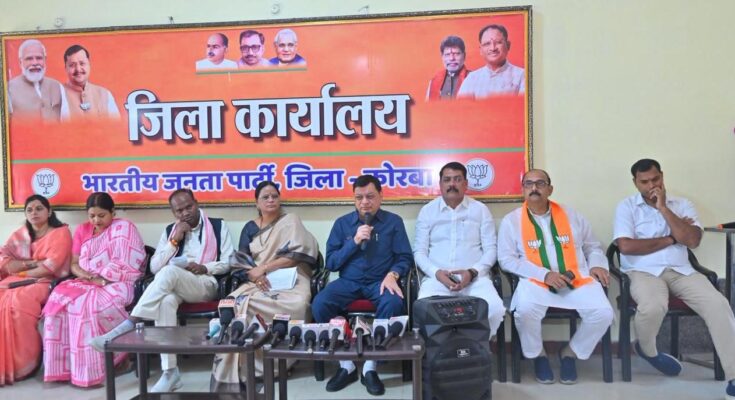 कोरबा,24 अप्रैल 2026। टीपी नगर स्थित भाजपा कार्यालय में आयोजित प्रेस वार्ता में कैबिनेट मंत्री लखन लाल देवांगन ने पूर्व मंत्री के आरोप पर कड़ी प्रतिक्रिया देते हुए की मैं उनको खुली चुनौती देता हूं कि किसी से भी ₹1 लेने का आरोप साबित करके बताएं।