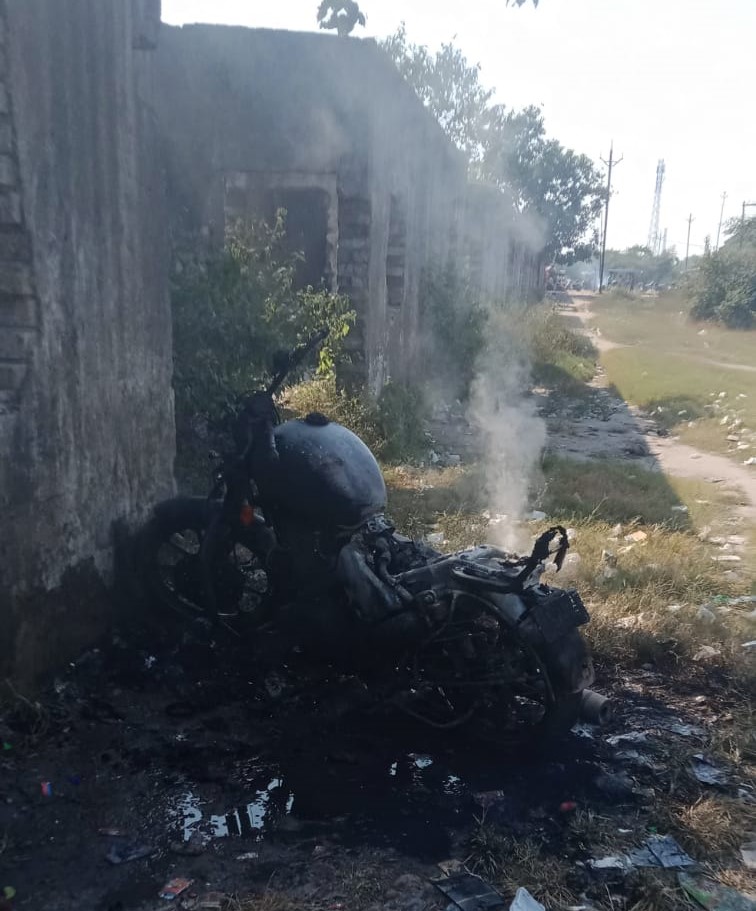 0.करीब 1:00 बजे अज्ञात अपराधियों ने मेरे बाइक में आग लगा दी