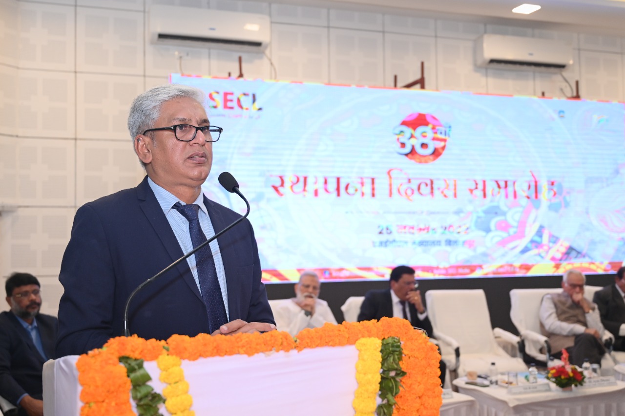 BILASPUR,25 NOVEMBER I SECL(South Eastern Coalfields Limited) वसंत विहार स्थित रविन्द्र भवन के टैगोर हॉल में 25 नवंबर को अध्यक्ष सह प्रबंध निदेशक डॉ. प्रेम सागर मिश्रा के मुख्य आतिथ्य, निदेशक तकनीकी संचालन सह योजना-परियोजना एस.के. पाल के विशिष्ट आतिथ्य, पूर्व अध्यक्ष सह प्रबंध निदेशक व्ही.के. सहगल, एम.पी. दीक्षित, एन.सी. झा, पूर्व निदेशक तकनीकी संचालन एल.के. श्रीवास्तव,एन.के. सिंह, पूर्व निदेशक (कार्मिक) के.के. श्रीवास्तव, एसईसीएल संचालन समिति के नाथूलाल पाण्डे (एचएमएस), मजरूल हक अंसारी (बीएमएस), गोपाल नारायण सिंह (एसईकेएमएसी), वी.एम. मनोहर (सीटू), ए. के. पाण्डेय (सीएमओएआई), SECL कल्याण बोर्ड, एसईसीएल(South Eastern Coalfields Limited) सुरक्षा समिति, सिस्टा, कौंसिल एवं ओबीसी एसोसिएशन के पदाधिकारियों एवं विभिन्न क्षेत्रों से आए अधिकारी-कर्मचारीगण, विभिन्न विभागाध्यक्षों व स्थानीय अधिकारियों-कर्मचारियों की उपस्थिति में SECL(South Eastern Coalfields Limited) का 38वॉं स्थापना दिवस सोल्लास मनाया गया।